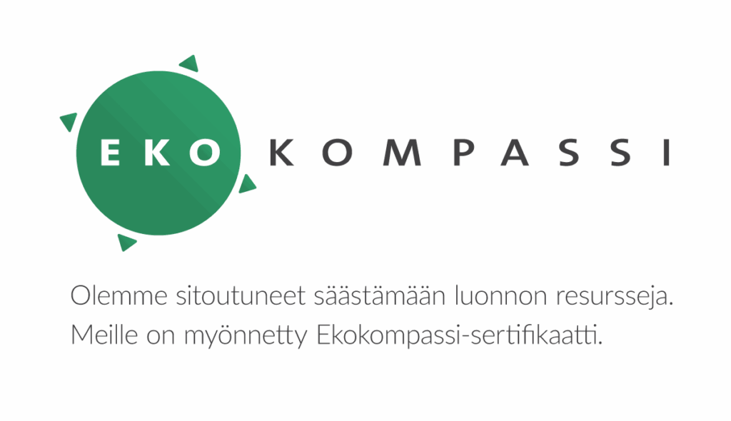 Vuoden 2024 lopulla päätimme ottaa seuraavan askeleen ja hankkia vastuullisuustyöllemme ulkopuolisen ja tunnustetun sertifikaatin. Vertailimme eri vaihtoehtoja ja valitsimme Ekokompassin sen käytännönläheisyyden ja jatkuvan parantamisen mallin vuoksi. Ekokompassi tarjoaa selkeät työkalut ympäristövaikutusten arviointiin ja kehittämiseen – juuri sellaiset, joita etsimme.